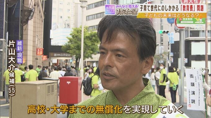 「高すぎる学費を半額に引き下げたいと思っています。入学金制度の廃止だとか奨学金制度、ほとんどが貸与型で借金になるんですけれども、これを給付制の奨学金制度を広げていくということもやっていきたいと思っています」