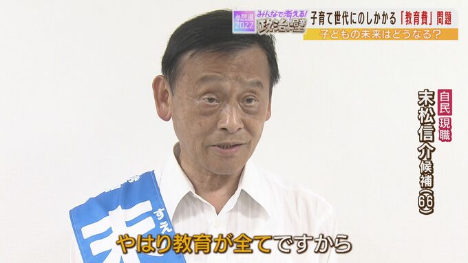 教育行政を所管する文部科学省で現職大臣を務める自民党の末松信介さん(66)は、「児童手当を拡充し教育格差をなくしたい」と訴えています。