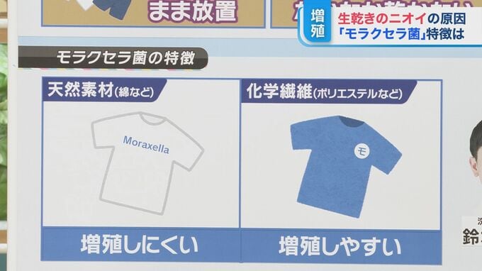 キャップであったりTシャツであったり、化学繊維系はポリエステル入ってるものものは臭いが頑固なんです。(臭いが)取れたと思っても、もう1回被ってしばらく歩いたら現れてくるっていう。部屋干しだけではありません。このモラクセラ菌、天日干しをして紫外線に当てても死滅しないんです。さらに、乾燥させても死にません。