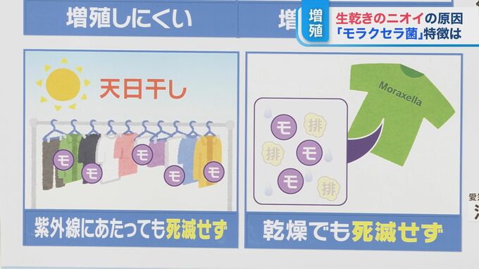そうなんです。一度(臭いが)ついてしまうとなかなか落とせないっていうのが、モラクセラ菌の特徴です。外で干すと(日向で)40℃50℃になることもあるとは思うんですけれど、それでもなかなか死なない。