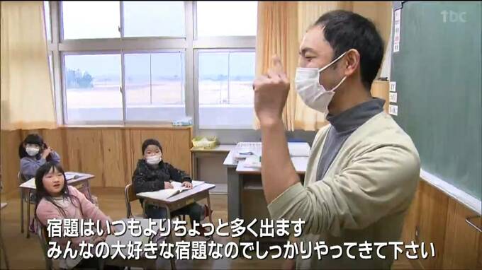 「宿題はいつもよりちょっと多く出ます。みんなの大好きな宿題なのでしっかりやってきて下さい」