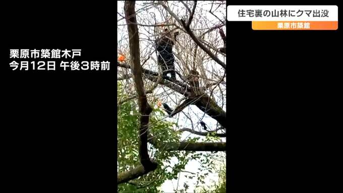 宮城県栗原市築館で15日午前、住宅裏の山林にクマ1頭が出没しました。この付近では、今週に入ってから、毎日のようにクマの目撃が相次いでいて、警察が注意を呼びかけています。