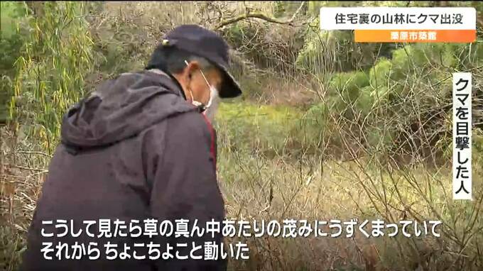 15日も午前7時半頃、住宅近くの山林にクマ1頭が出没し、住民が警察に通報しました。現場は、12月12日にクマが撮影された住宅から東に100メートルほど離れた場所です。目撃した住民によりますと、クマは体長1メートルほどで、住宅の北側にある山林の斜面の下に30分ほど留まっていたということです。