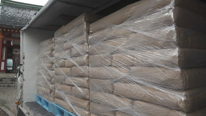 これは石川製麺が毎年行っているもので、ギフトや商品用となる生そばやゆでそば合わせて20万7000食分のそば粉に、神職がお祓いをしました。