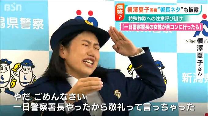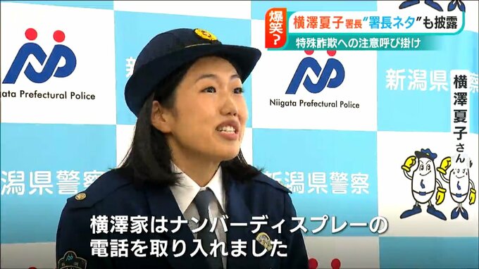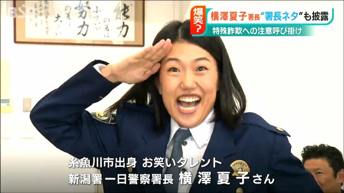 お笑いタレントの横澤夏子さんが新潟警察署の一日警察署長を務め、特殊詐欺被害の防止を呼び掛けました。