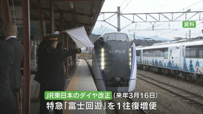 JR東日本によりますと、来年3月16日のダイヤ改正で東京都内から富士山・河口湖方面に直通する特急「富士回遊」を1往復増便することを発表しました。
