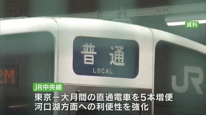 さらに午前9時から午後5時の時間帯にJR中央線の東京ー大月間の直通電車を5本増やし河口湖方面への利便性を強化するとしています。