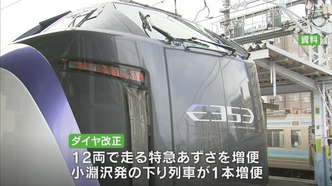また通勤時間帯の混雑緩和のため12両で走る特急あずさを増やすほか、午後7時台になかった小淵沢発の下り列車が1本増便となる予定です。