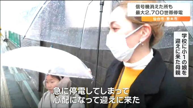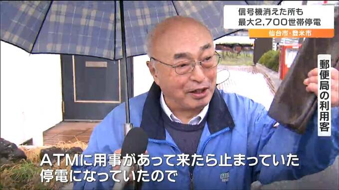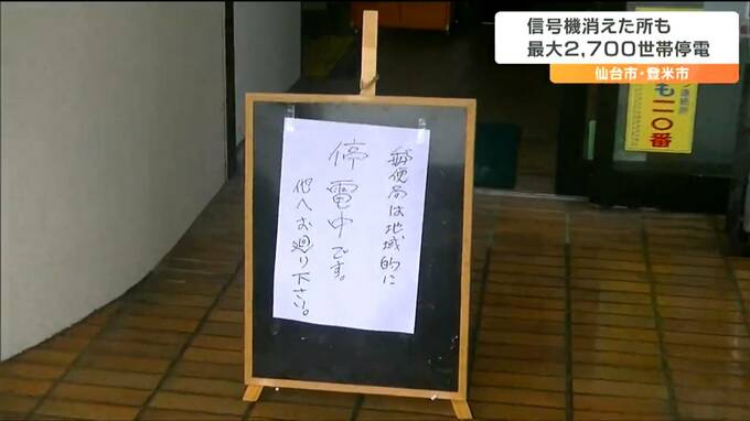 15日午後、宮城県の仙台市青葉区や登米市で最大2700世帯が停電しました。青葉区では信号機も消え、警察が対応にあたりました。