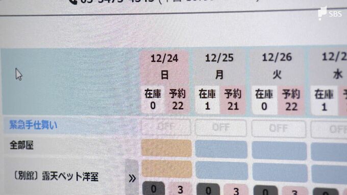 「例えば12月24日、在庫0、予約22、(客室は)22部屋ですので、満室ということになっています」