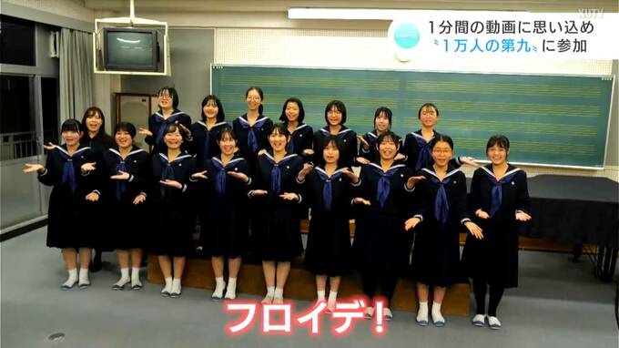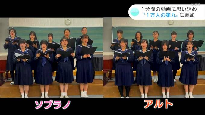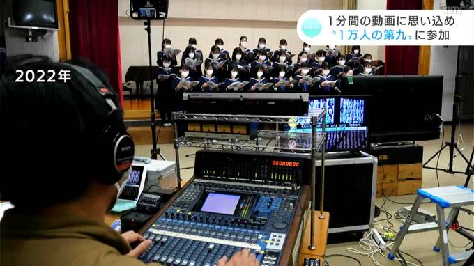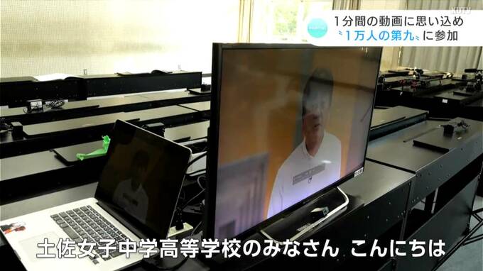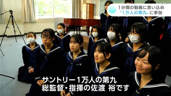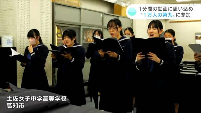 「サントリー1万人の第九」は1983年から、毎年12月の第一日曜日に大阪城ホールで開催されています。一般の募集などによって、1万人規模の合唱団を結成しているのが特徴で、コロナ禍では、動画の投稿企画も活用しながらコンサートを行ってきました。世界的な指揮者、佐渡裕さんが総監督・指揮を務めます。土佐女子は、主催者からの呼びかけに応じ、去年、初めてリモートで参加しました。今年も動画投稿での参加です。