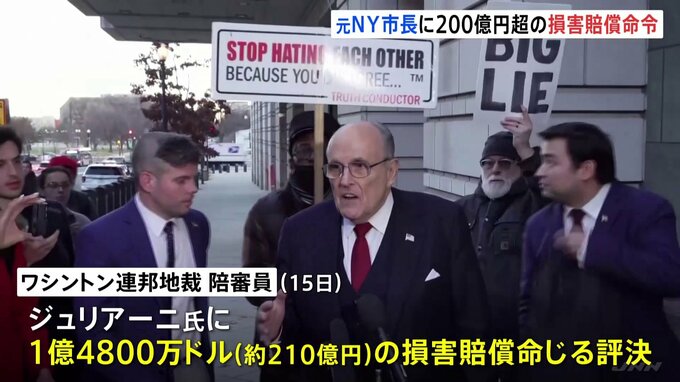 2020年のアメリカ大統領選挙で不正があったと主張するジュリアーニ・元ニューヨーク市長を選挙スタッフが名誉毀損で訴えた裁判で、ジュリアーニ氏に200億円を超える損害賠償が命じられました。トランプ前大統領の…