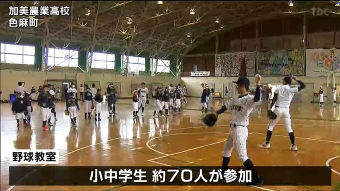 加美農業高校で行われた野球教室には、地元や加美町などの小中学生およそ70人が集まりました。