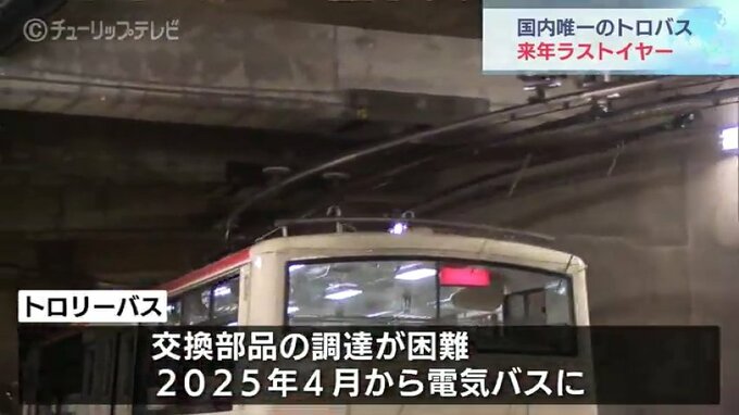 しかし、交換部品の調達が困難となり、再来年4月からは電気バスに変更となります。