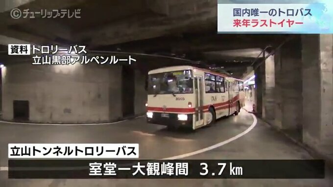 立山黒部アルペンルートを走る国内唯一のトロリーバスが、来シーズンいっぱいで運行を終了します。