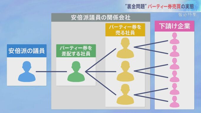 安倍派の議員が関係する会社に勤め、パーティー券を売っていたという男性が証言した。
