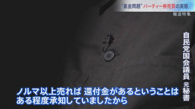 「私の議員は、大体ノルマが50枚ですね。1枚2万円だから50枚で100万円。従えている議員の党内での力を示す意味でも、なるべくノルマを超えて売り上げないといけないというのがありますから、一生懸命売ってました」