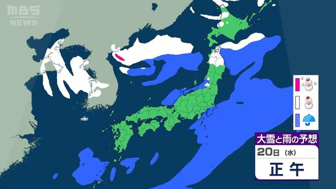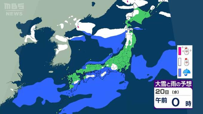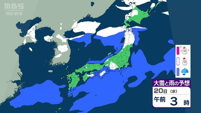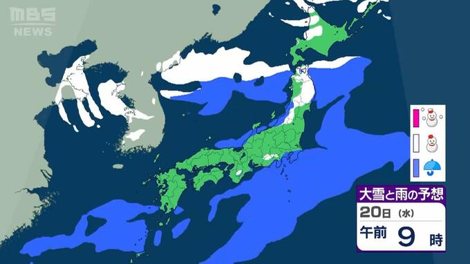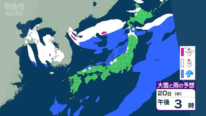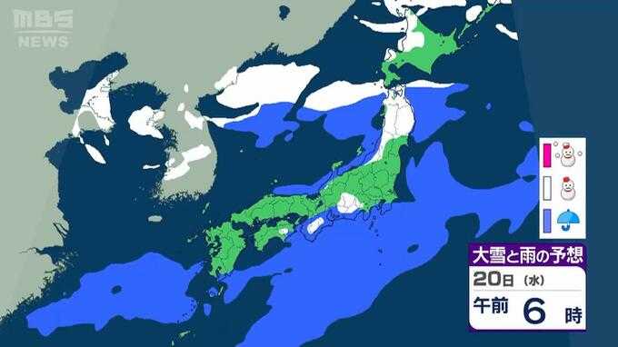「10年に一度レベルの低温・大雪」のおそれ 20日以降寒気さらに強まる 17~18日にかけ「最大70センチ」降雪予想の所も 毎日放送 2023年12月17日(日) 06:00 国内 【12月20日の大雪と雨のシミュレーション】
