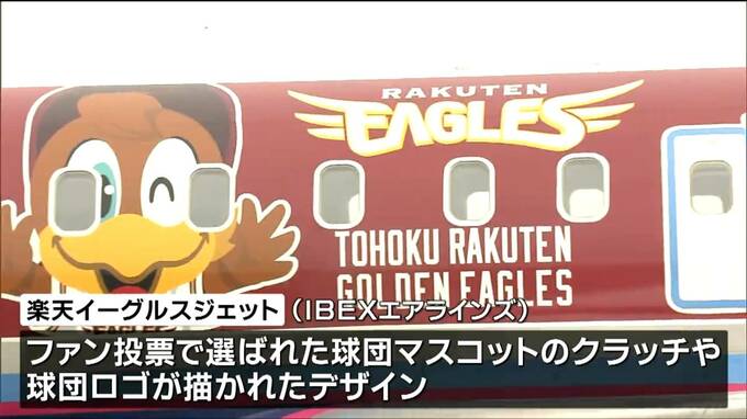 プロ野球・楽天イーグルスの球団マスコットなどが新たにデザインされたジェット機の運航が17日から始まりました。