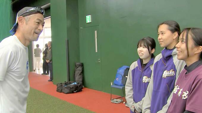 「僕がやるんで打ってみて」。イチロー氏は他の部員たちに対してもバッティングピッチャーを務めた。50歳のイチロー氏が黙々と投げ続け、質問にも身振り手振りを交えて丁寧にアドバイスをおくった。