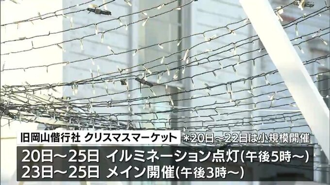 イルミネーションの点灯も行われる「旧岡山偕行社クリスマスマーケット」は、今週(12月)20日からも開催される予定です。