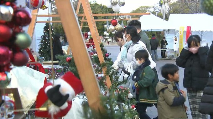 岡山市北区できのう(17日)クリスマスマーケットが開かれ、大勢の人で賑わいました。
