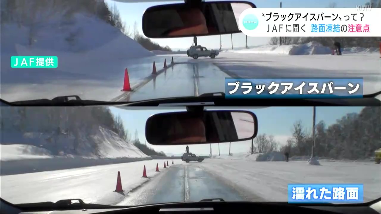 JAFによりますと、ブラックアイスバーンはアスファルトをほとんど見た目が変わらず、凍っているのに気づきにくいと言います。
