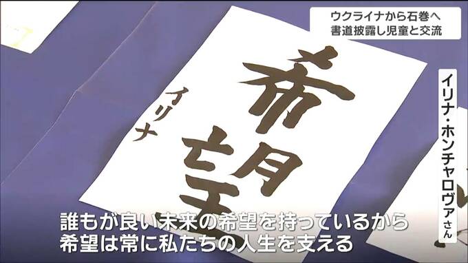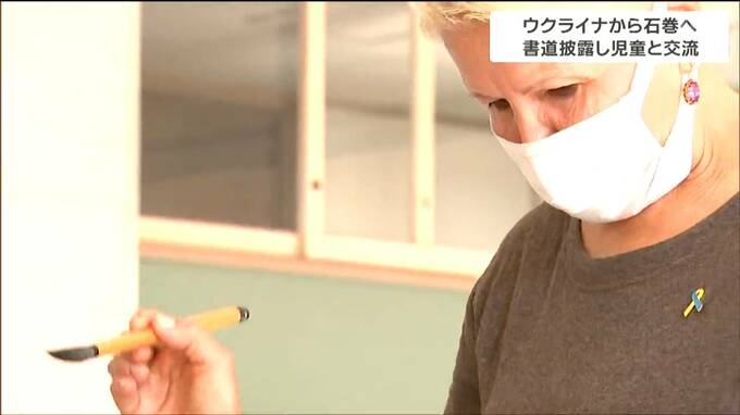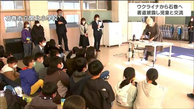 戦禍のウクライナから宮城県石巻市に避難している女性が18日、地元の小学校で書道を披露するなどして児童と交流を深めました。
