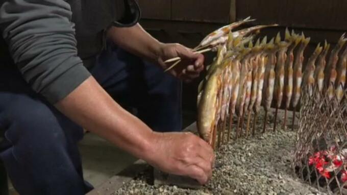愛媛県大洲市内では雑煮の出汁などに重宝される、伝統食材「焼き干し鮎」が盛んに作られています。黄金色の光沢を放つ「焼き干し鮎」。大洲市柴の上満武さんの作業場でも盛んに作られています。(上満 武さん)「…