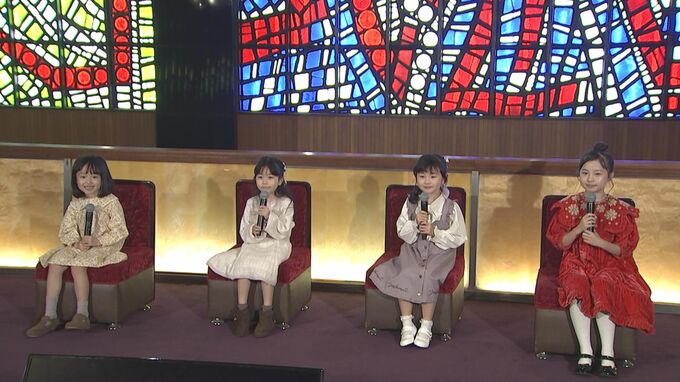 「今年成長したこと」を質問されると、増田さんは“身長が4センチくらい伸びました”と、シンプルな回答。クラスで列の先頭なのが嫌だと悩む増田さんに、池村さんが“わたし、前から3番目!”と意気揚々と反応しました。増田さんが“からだ交換してよ〜”と提案すると、井澤さんと福地さんは“怖いよ”とリアクションしましたが、体の交換を提案された池村さん本人は快諾。“あい!(増田)梨紗で〜す”と、入れ替わった寸劇をした池村さんは、我に返ると“将来は身長170センチ超えるくらいになりたい”と宣言。