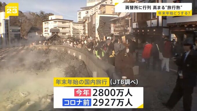 コロナ規制も明け、高まる“旅行熱”。JTBによると、年末年始に国内旅行をする人は2800万人に上ると予想され、コロナ前の水準(2927万人)に近づいています。