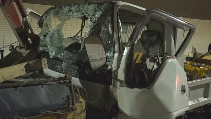 消防によりますと、この事故でトラックに乗っていた30代と50代の男性2人がけがをして甲府市内の病院に運ばれました。