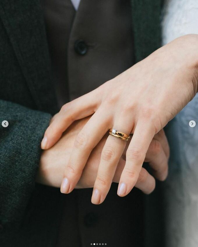 続けて「とても不器用ではありますが、前日の雨がまだ残っている地面にひざまづいてプロポーズしてくださったり、お家では、娘のお人形の髪の毛をシャンプー、トリートメント、ドライヤーまで完璧に仕上げるような、とてもとても広く美しい心を持った方です。私は安心して夜眠れる日々に幸せを感じています。」と記しました。