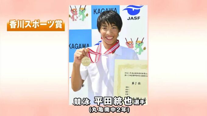 丸亀南中学校の平田統也選手は、2年生にして全国中学校体育大会の男子100メートル背泳ぎで優勝。