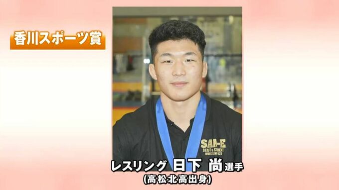 香川スポーツ賞に選ばれたのはレスリングの日下尚選手です。高松北高校出身で現在、三恵海運に所属する日下選手は、9月に開かれた世界選手権の男子グレコローマンスタイル77キロ級で3位に入りました。パリ五輪の代表に内定するなど来年の活躍も期待されています。