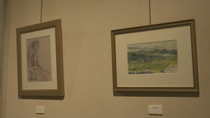 パステル画や水彩画は、久美子さんの作品。阿蘇の景色やアジサイなどの生け花を描いた作品のほか人物画など、パステルの淡い色調が見る人に心地よさを感じさせてくれます。