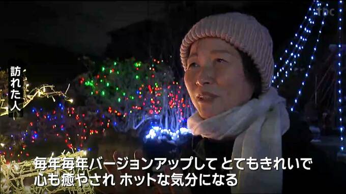 鹿又さんが一人でこつこつと10日ほどかけて飾り付けたイルミネーションは年々、その豪華さが増しています。訪れた人たちは、住宅を包み込む鮮やかな灯りを楽しんでいました。