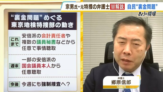 (郷原信郎氏)これまで安倍元総理と、その派閥が強大な政治権力を持っていた。それに対する、いろんな反発が生じていたものが、ここにきて裏金疑惑っていう言葉で、国民の怒りが全て安倍派っていう存在に向かっていったことを、検察が利用している面もあると思うんです。