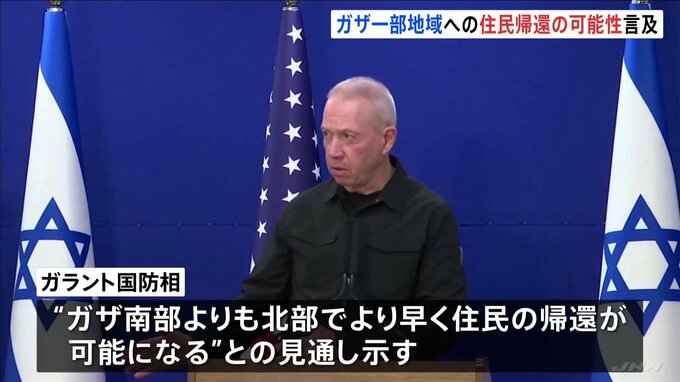 イスラエルのガラント国防相は、イスラム組織ハマスとの戦闘が続くパレスチナ自治区ガザについて、目標が達成した地域では住民の帰還に着手する可能性に言及しました。イスラエル ガラント国防相「作戦を徐々に次…