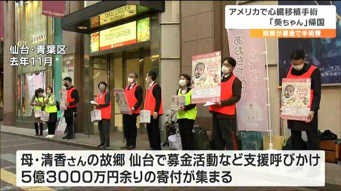 母・清香さんの故郷・仙台で募金活動をするなど全国で支援を呼びかけ手術費や渡航費として5億3000万円あまりの寄付が集まりました。