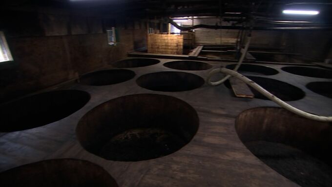 4日かけて仕込んだ麹はもろみ蔵の杉桶に入れて、早くて1年3か月、長いもので20年熟成させて醤油にしていきます。気温が低い時期に行われる麹の仕込みは、4月下旬まで続きます。