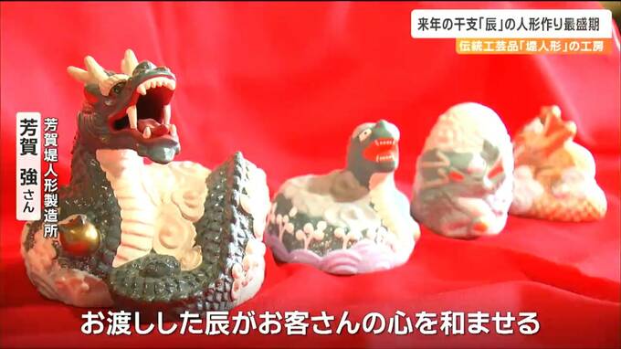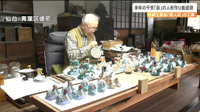 天に昇る龍のように機運が上昇するようにとの思いが込められています。300年以上の歴史がある宮城県の伝統的工芸品「堤人形」の工房で、来年の干支「辰」をかたどった人形づくりが最盛期を迎えています。