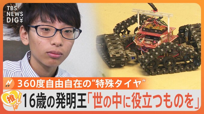 高校1年生が「日本一の発明」を生み出しました。360度自由自在に動かせる特殊なタイヤ「オムクロタイヤ」です。重機などに使われている現在のタイヤは、何度も切り返す必要がありますが…まさに唯一無二のタイヤ。…