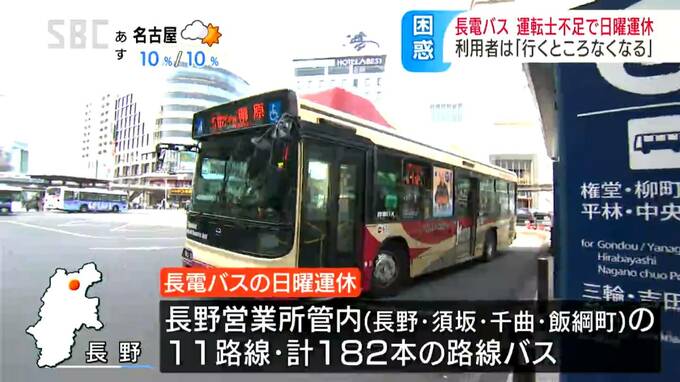 運転士不足が深刻です。長野市の長電バスは、2024年1月21日から当面の間、路線バスの日曜日の運休を決めました。日曜日の運休が決まったのは長電バスの長野営業所管内の路線バスで、長野市、須坂市、千曲市、飯綱…