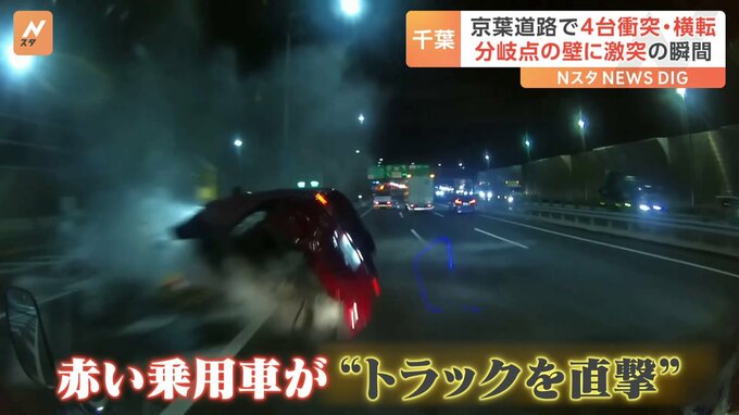 今月14日、千葉県市川市の京葉道路で起きた多重事故。横転したトラックのドライブレコーダーがその一部始終をとらえていました。