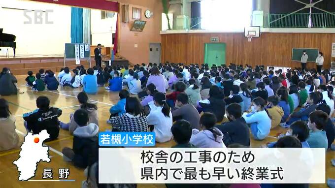 校舎の改修工事に伴い、長野県内で最も早い終業式を迎えた長野市の若槻(わかつき)小学校。