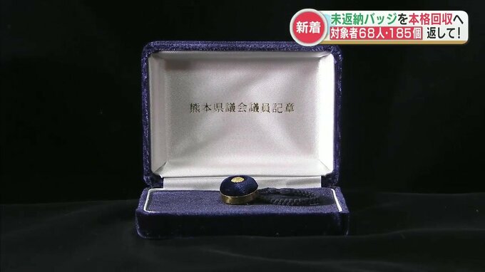 県議会事務局が議員バッジの本格的な回収に乗り出します。返納を求める対象となるのは連絡が取れる元議員68人 185個です。熊本県議会の「議員バッジ」は当選の度に貸し出されるもので、引退や落選などの理由で職を…