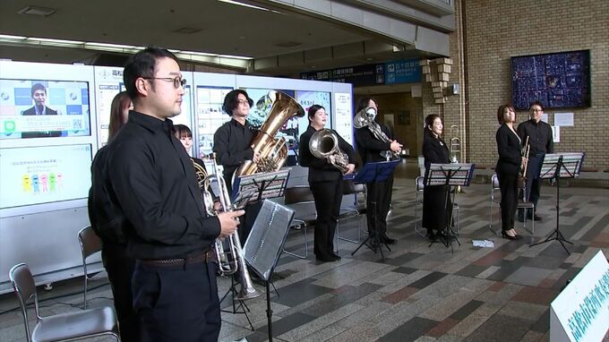 まもなくクリスマスです。市民に生演奏を楽しんでもらおうと、香川県の高松市役所吹奏楽団がミニコンサートを開きました。