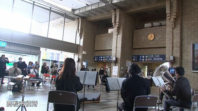 吹奏楽のアンサンブルが響くのは高松市役所の中、市民に楽しんでもらおうと職員らの吹奏楽団によるミニコンサートです。