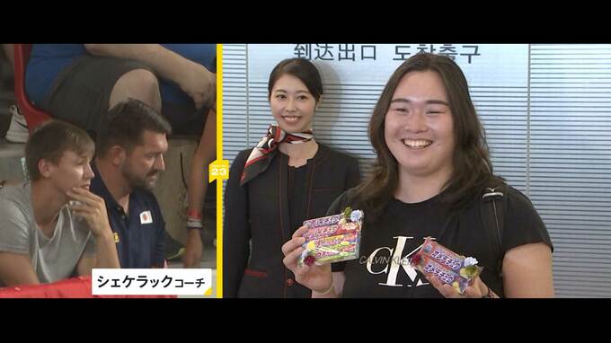 2023年8月の世界陸上ブダペスト金メダルに続き、ダイヤモンドリーグの年間チャンピオンを決めるファイナルでも日本勢初の優勝。世界のビッグタイトル2冠を手にした北口選手が帰国の際に手渡されたのはシェケラックコーチが食べて話題になったハイチュウ。サプライズプレゼントにトレードマークの笑顔が弾けた。